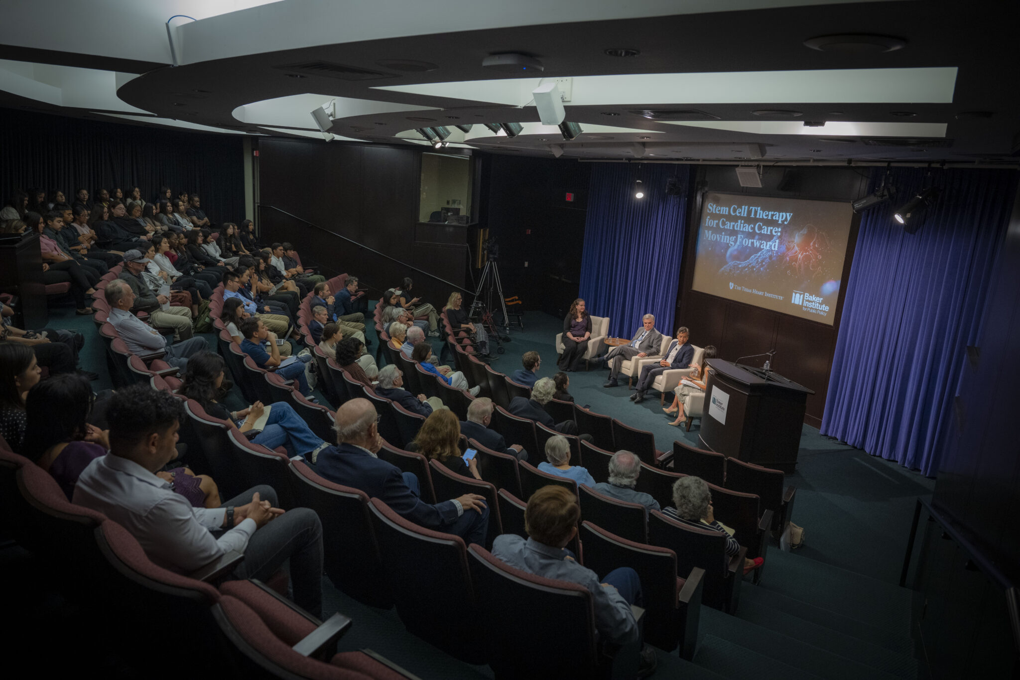 On Friday, September 13, 2024, the Rice University Baker Institute Center for Health and Biosciences and The Texas Heart Institute presented “Stem Cell Therapy for Cardiac Care: Moving Forward” as part of their annual stem cell policy series. Rice University’s Owl Have You Know podcasting host, Maya Pomroy, led the discussion with physician-scientists Drs. Deepak Srivastava and Emerson C. Perin, and Baker Institute Fellow and policy expert Dr. Kirstin R.W. Matthews.